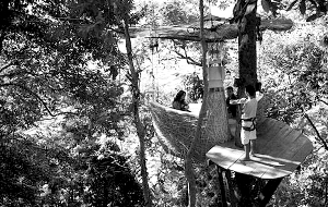目前,在该餐厅用餐两人收费283英镑。服务员会滑着高空索道穿过雨林,将食物和美酒送上。“鸟巢餐厅”则由绞车控制,可以沿树上下,方便接送用餐者。