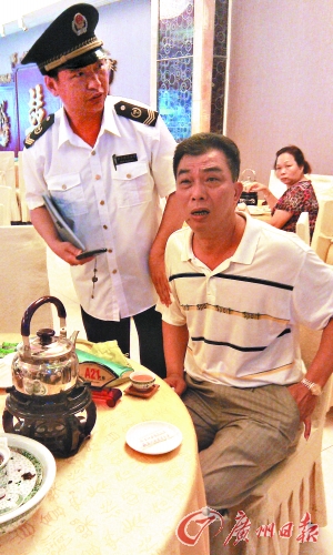 6月30日,市城管委主任李廷贵在花地大道东江海鲜酒家茶香居分店禁烟区发现有食客违规吸烟,但由于取证原因,当场并未开罚。