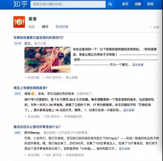 要知道以「专业」著称的知乎,聊起「吃」来也很专业。知乎上有1300 万人关注了「美食」话题,产生超过63000个问题。