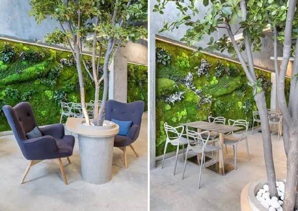 如此纯自然的餐厅景观,不但可以体现餐厅环保健康的理念,同时也是吸引顾客自拍宣传的好地方。这样的设计真的很不错哦。