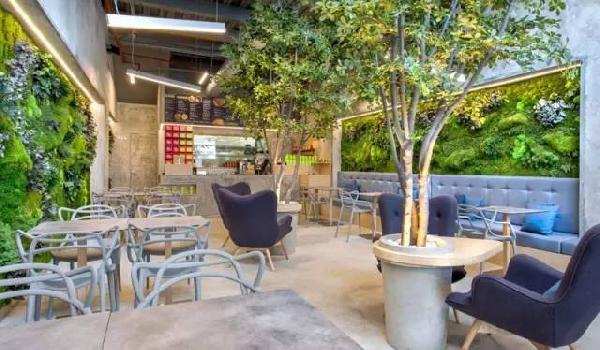 要体现一家餐厅健康环保的理念,到底应该怎么做呢?是写广告自卖自夸?还是让顾客一看到你的门店就觉得很健康?国外的一家餐厅就直接将树搬进了餐厅。
