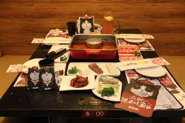 为了迎合这群年轻的消费群体,新辣道在此次授权合作中,进行了全方位的主题装饰,包括地面、桌垫、餐具、桌牌等。除此之外,新辣道鱼火锅针对此次合作特别推出了“吾皇套餐”。