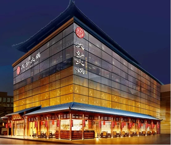 在门店装修上,由于大妙火锅在每个城市的选址,基本上都属于景区,所以会在体现四川火锅文化的基础上,会根据每家店的位置,融入景点文化。