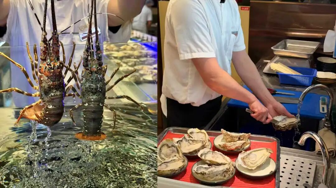 此外,该区域还专门设置了海鲜池,顾客选中后由工作人员在海鲜池边即时处理,形成“挑选-处理-上桌”的闭环服务。