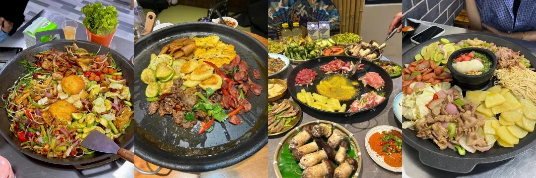 首先,烹饪方式独树一帜,不同于常见的烤肉使用直火、铁网或者铁盘,贵州烙锅主打“烙”而非“烤”,即用烧热的锅将食材烙熟,搭配专属蘸料食用,吃法新颖且独特。