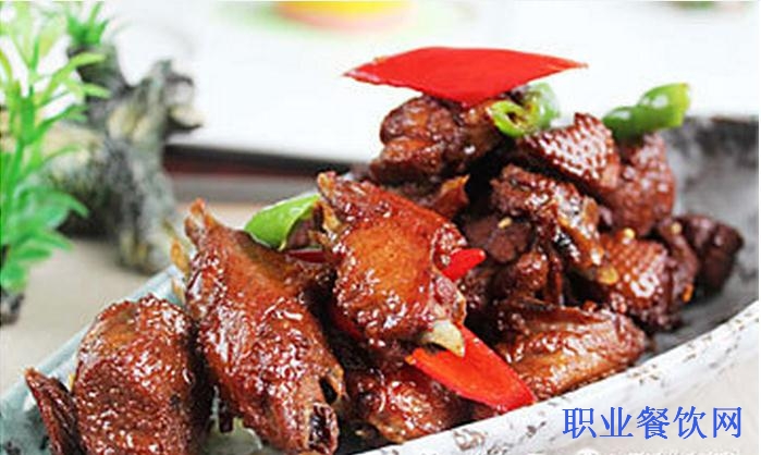 小贴士: 此烧制的过程属于油水混烧。炒料时的油宜重,并且要把香料的香味炒出来,再下鸭块一同烧。另外,烧时还可添少许清水,但是要以起锅前锅里的水分基本收干为宜。