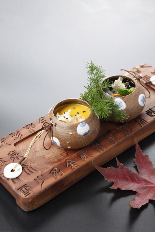 3、炖汤:海味龙筋仙菇汤+甘笋浓汤配脆菇