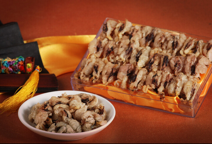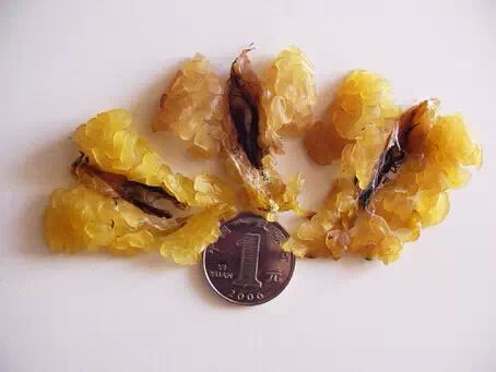 2、联体油:联体油外观类似蝶形,为雪蛤油最传统加工方式,需要自行清理杂质。因其外观无法仿制,无假货,价格居中,清理方便,长久以来备受欢迎。