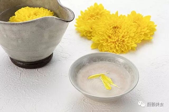 除了做刺身装饰,还可以放在清酒里做成菊酒来配刺身,酒中自有一股菊花的清冽风味,这是文人墨客们最爱的风雅之事。