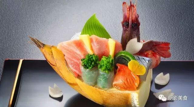 大竹叶,在日本料理的装饰中也是起到非常重要的作用。特别是以大竹叶雕画而成的各种图案,栩栩如生,用在寿司和刺身料理中精致至极,赏心悦目。