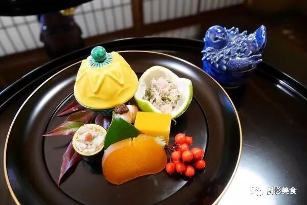 酸橘不但可以调味,还可以做出很特别的器皿来装盛食物。图为怀石料理中的酸橘装盛。