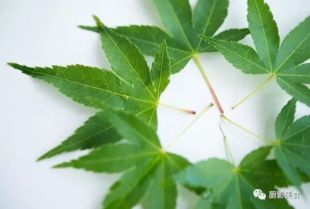 日本四季分明,日本人应季而烹应季而食,因此料理装饰也会应季而变,充满巧思。绿枫叶因此被广泛运用在菜品之中。特别是高端日料的必备之物。