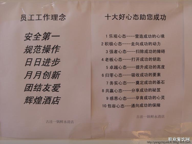 关于团结;经营之道不在于特别的技术,而是团结人的哲学;以心为本;人心齐,泰山移;大家在一起工作天长日久难免有摩擦,有误会,有争吵,为挣一块抹布面红耳赤,甚至大打出手,如同陌路,给工作造成阻力,天南海北我们能走在一起,相识是缘,相知是福,走在一起更应该珍惜共同工作的日子,不要等失去啦,才珍惜。针对这种情况我们每月发完工资第二天由厨师长组织员工聚餐,厨房男的掏20元。女的掏15元,当然多啦不限,聚餐结账时费用不够又厨师长补齐;大家在一起吃吃饭饭。聊聊天天,合一张影,碰一杯什么误会,不快,统统见鬼去吧;不但增进啦友谊更增进啦团队的凝聚力。
