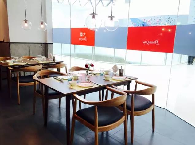 名字这么喜庆,店内设计却是十足的性冷淡风。色调以东北银、金属灰和各种原木色为主,整体环境简洁大方。大面积的玻璃窗作隔断,使得整体空间采光和视野都很好。
