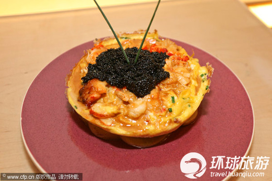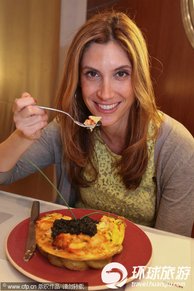 游客Marisa Zafran正在品尝世界上最贵的鱼子酱蛋塔。