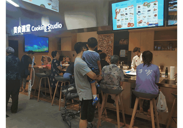 店内新开设的“美食课堂”也丰富了消费者的体验,“消费者肯定会存在对我们的产品和食材不了解的情况,通过现场制作能让大家体验到口味、食材。”小象生鲜相关负责人说。