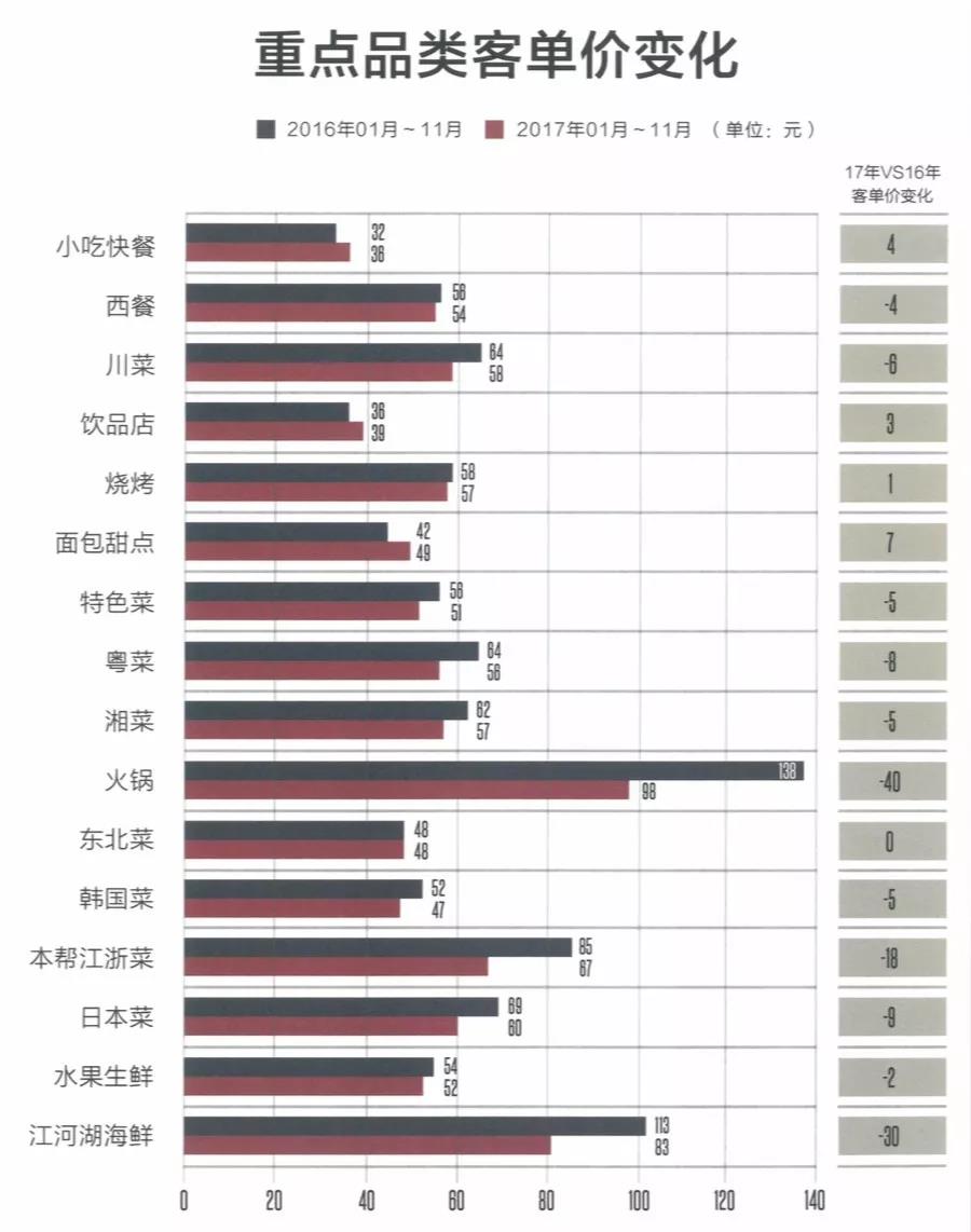 而另一方面,快餐的客单价却只有 36 元,在所有品类中排名垫底,甚至低于饮品的客单价 39 元。