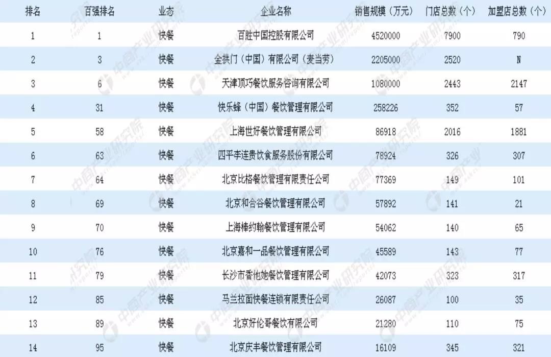 中国连锁经营协会的最新报告报告显示,2017 年,百盛中国控股和金拱门(中国)占据了中国特许连锁百强榜的前两名,百胜去年一年实现销售规模 452 亿元,门店总数为 7900 家,实现销售规模 220.5 亿元,门店总数为 2520 家。