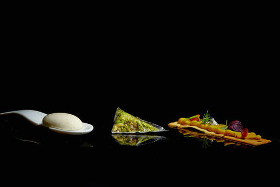 通过创作,江振诚精心研究每一种元素在他的菜式和整体的美食学中演绎的角色,不论是“工艺”- 烤台湾小玉米;“质感”- 龙虾、意大利土豆球和鱼子酱;或“记忆”- 鹅肝果冻配黑松。其实每道菜也可以命名“简单”,因为它们只用少量原料制成,目的是避免味道互相掩盖。配上从鲜为人知的工艺酒园采购的天然葡萄酒,你一定按捺不住想要立刻前来品尝的冲动吧?!