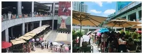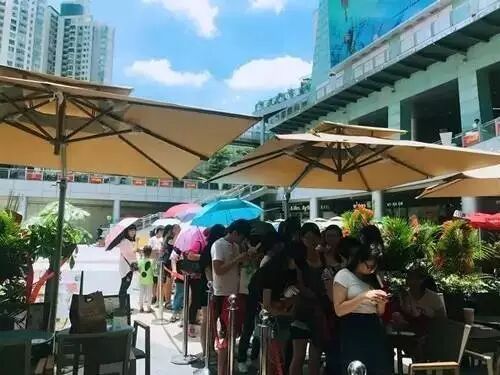门口排长队时,门店工作人员给排队的顾客提供冰饮、遮阳伞、驱蚊液及优惠券,注重细节,用心服务,让顾客感受到品牌的温度。