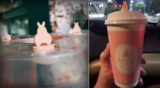 除了周边,在“盖世兔”、“小白兔”、“月兔兔”的产品命名、粉色杯子,粉兔杯塞、软欧包造型、铜质感装修设计等方面,处处渗透着萌系元素。