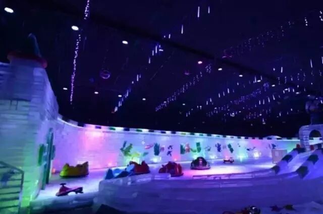 场馆里始终保持-15°C的极寒状态,散落着形态各异的冰雕,更有冰上保龄球、极速冰滑梯、冰上碰碰车等游乐项目,为广佛市民提供新奇冰雪体验。