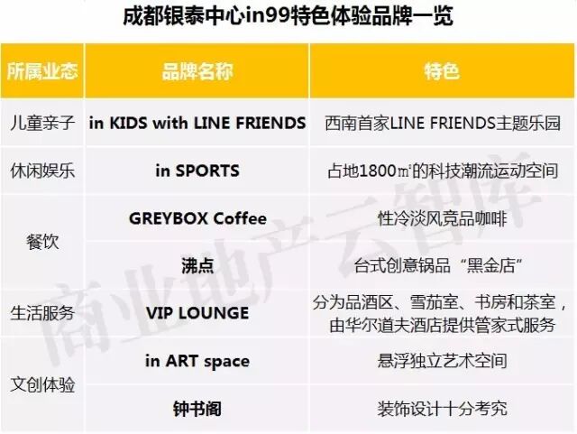 作为银泰在成都的重磅力作,in99以精美设计、针对不同客群定制购物分区、引入诸多首进西南的高端品牌等为中产带来消费升级体验。覆盖全业态,其中,in KIDS with LINE FRIENDS、in SPORTS及in ART space等一系列in品牌独有业态是最大亮点所在。