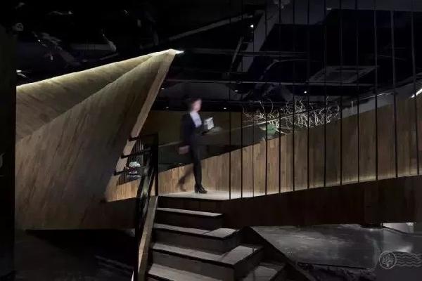 餐厅入口空间采用钻石切割的手法,呈现出不规则却又立体的充满想象力的空间,大胆的表达,引导着人们进入这个古色古香,带着禅意之感的餐厅。