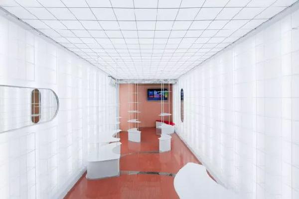 从线条柔软至灯光,纯白的主光线,辅以冰淇淋色的蓝绿点缀光,整间店铺给人感觉温柔又梦幻。