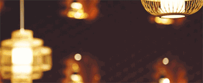 餐厅里悬挂的是暖色的灯,