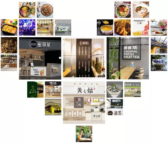 如蒙自源、绿茵阁、牛状元、象天下、钙妈妈、8090鲜萃茶、澜亭里、黑泷堂、丧茶、泰过饮、茶莫停、爷茶、澳食尚、虾锅传奇、星语乐茶、新时沏、慕玛披萨、让签签飞、吾饮良品、汇巢鲜茶、乌巴茶、YOBA酸奶冰淇淋、罗罐中、快乐番薯、KING'S DOG热狗王、海银海记、雪芝蜜语、蛙迪卡、一品蹄督、椰二三、一笼一蒸、功夫磨坊、奈茶水峰、黄七姑、捷翔饮品、榴恋花、芒果很黄、柳螺香、画布咖啡、春风十里音乐餐吧、万娱仓、九阳豆浆、双枪咖啡、炒民在膳、冰羽、喜感の串串、Focus Coffee 、MADO土耳其冰淇淋咖啡连锁店、四季粥铺、丰盛皇朝、大开沙界沙拉、细姨甜汤等等。