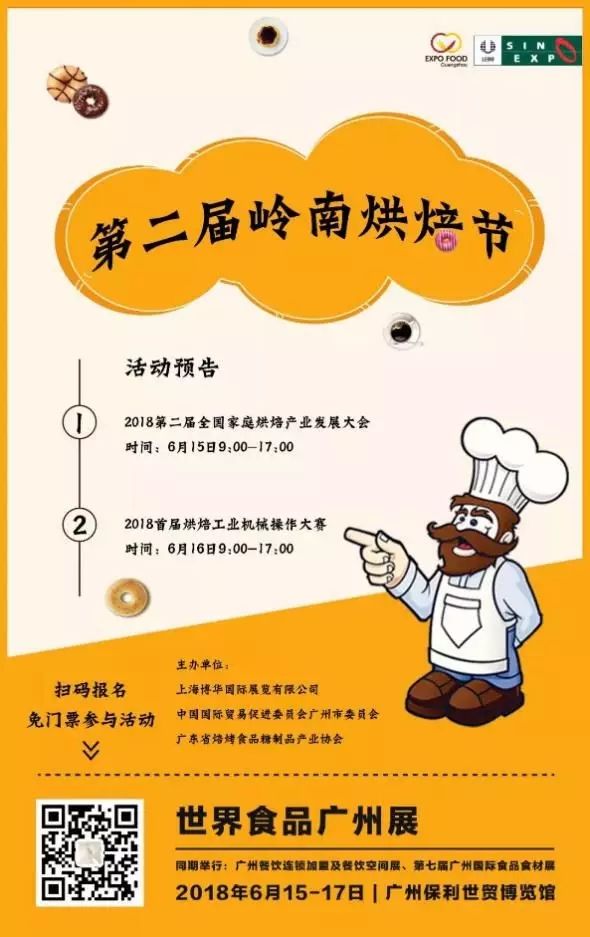 在这里,你不仅能跟着行业的大咖级人物学习烘焙知识,还可以亲身观摩烘焙专业人士的精彩比赛,体验一把与你独自在家制作蛋糕、饼干等与众不同的感觉。说不定当你看完“第二届岭南烘焙节”,也可以自己开工坊,做老板!既满足爱好,又有稳定生活的来源,如此两全其美的事,只需要你点点手指,一键参与本次活动(请长按下图二维码)!