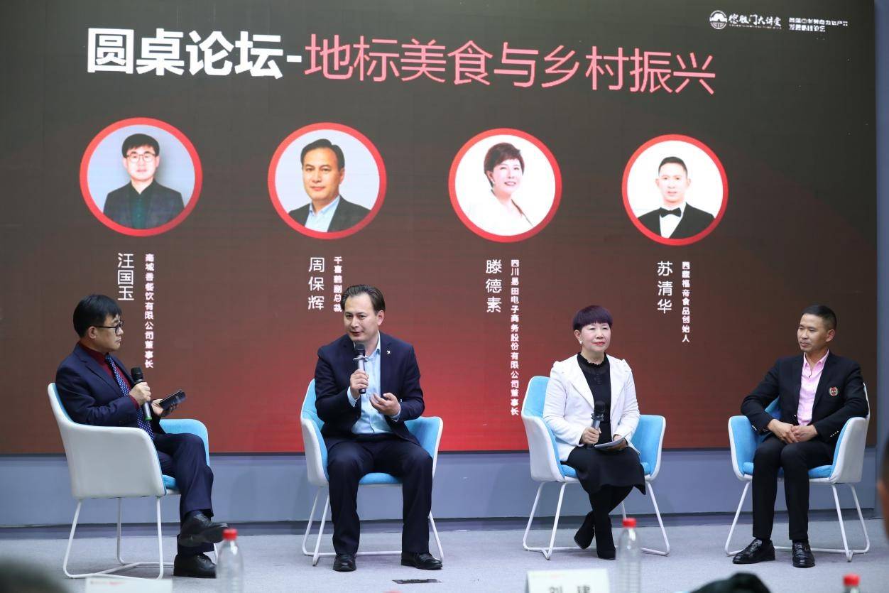 在“地标美食与乡村振兴”圆桌论坛中,南城香餐饮有限公司董事长汪国玉表示,“美食地标产品大多原材料来自地方水土的培育,与农民、农村、农业有着天然的联系,一旦形成产业集群,能够带动一产二产三产的共同发展,如旅游业、美食街、养殖业、服务业”。四川易田电子商务股份有限公司董事长滕德素认为,“万企”和“万村”两者本来就是相辅相成、共同促进的,企业结对帮扶乡村振兴,乡村产业助推企业发展,企业首先确保百姓应得利益,然后才考虑平台运营成本。