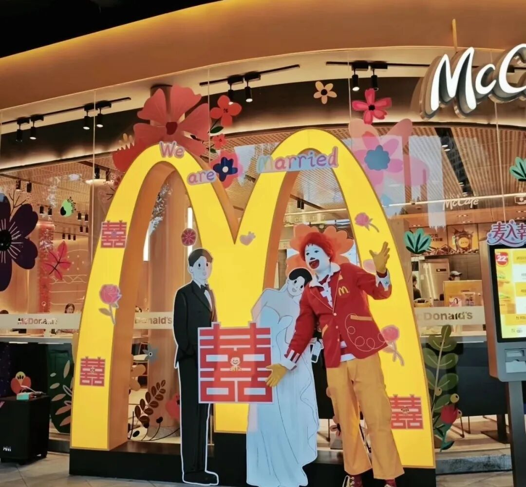 这一消费趋势的转变,也为餐饮品牌切入宴会赛道创造了全新机遇。越来越多的餐饮品牌推出轻量化、创意化的宴请服务。例如,麦当劳、华莱士曾推出婚礼主题套餐;喜茶、霸王茶姬等茶饮品牌也依托“奶茶婚礼”热点,开展婚礼团购业务。