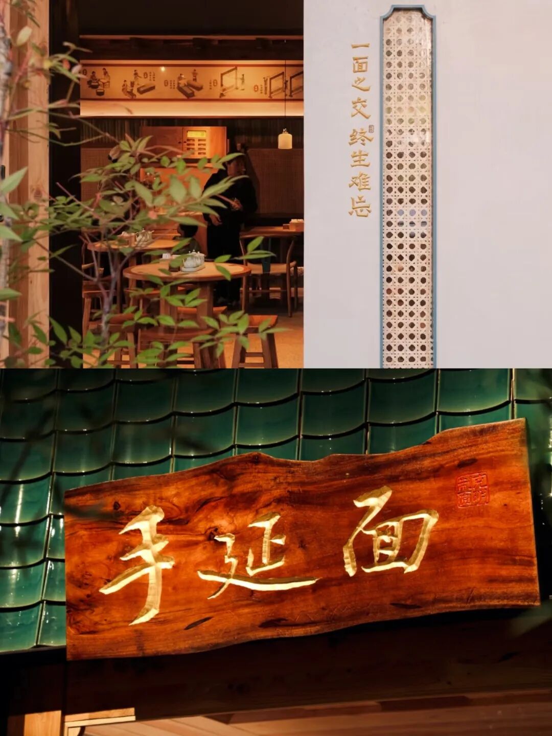 此外,店内悬挂的“手延面”实木牌匾,搭配“一面之交终生难忘”“四十年只为做一根好面”的题字,又将品牌的产品基因与情感价值植入到空间中,细节上颇具巧思。