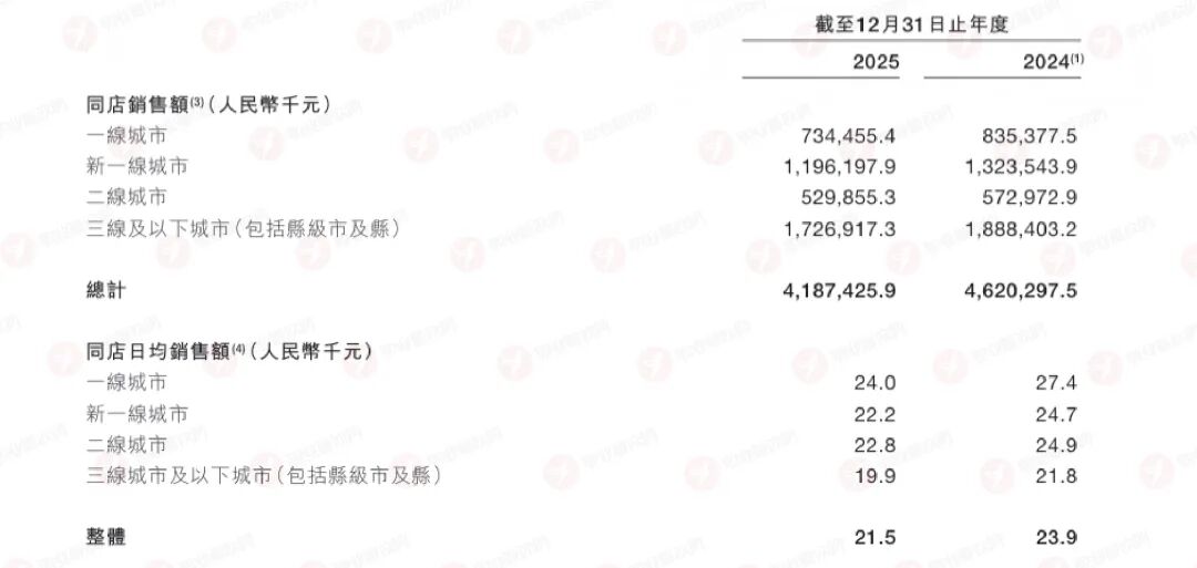 但同店日均销售额却出现明显下滑