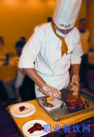 注:焖炉烤鸭与挂炉烤鸭前期制作方法一致,只是最后烤制时,前者使用不锈钢焖炉,先大火升高炉温,放入鸭坯后转小火烤制,最后再用大火烤脆上色。