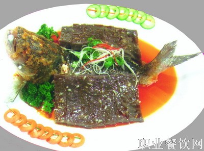 从开业一直热卖的“都面鱼”就是这样一个菜。都面是达州野生植物葛根磨碎沉淀出来的一种面粉,细嫩、软糯,深褐色。将都面加水、盐和匀成浆,里面加入一些蒸熟的米饭,一起揉匀,做成锅贴(刚开始,只用都面做锅贴,发现锅贴颜色太深,而且面发死,太粘糯,口感单一,于是加入一些米饭粒,这样颜色黑白交错,米饭和都面的口感互补,有嚼头,效果很好)。然后将冷却的锅贴改刀成块,在水煮鱼里面加入一些,成为“都面鱼”。客人吃此菜,发现小时候吃过的都面又上桌了,而且和鱼一起吃,非常怀旧。另外,都面锅贴还可以用来烧海鲜等,用途非常多。