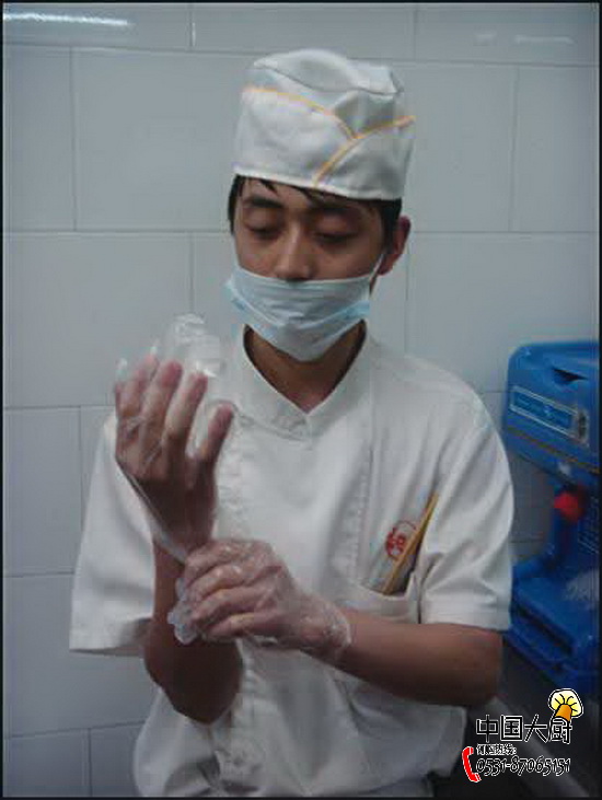 2、洗手后戴上一次性手套