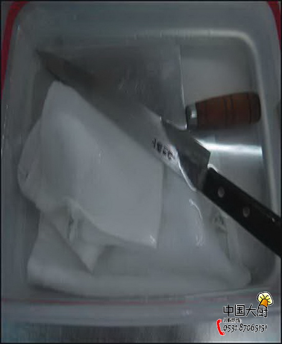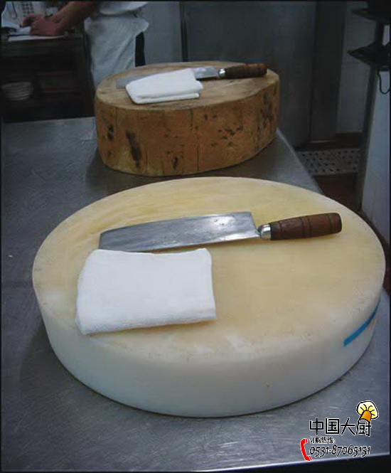 刺身间的墩子用酒精加热消毒,凉菜间、烧腊间的墩子用热水浸泡消毒。