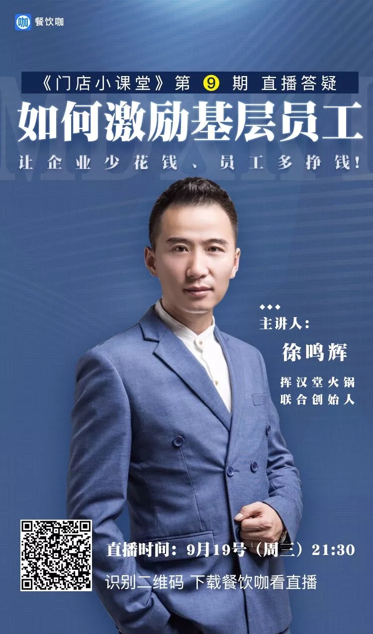 本期就在今晚9:30,由挥汗堂餐饮连锁机构联合创始人徐鸣辉老师分享《如何激励基层员工》,更有服务员、配菜员、洗碗工等6张基层员工的薪酬绩效表,你可以拿去就用!直接落地实操!