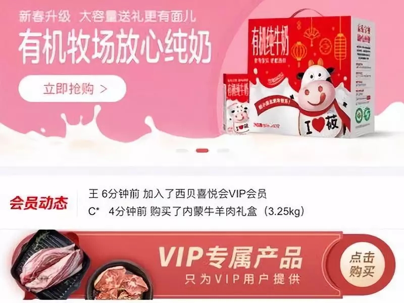 另一方面是商城代金券、甄选商品会员价、VIP福利日,这是一个培养高粘度线上粉丝的过程。换而言之,第一次鼓励买,经常来就优惠买,欢迎常来看看。而西贝喜悦读书会则是针对有需要的家庭会员,这个福利是比较贴心,但也是容易被忽略的部分。