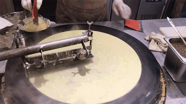 把传统的弄堂包角布做出了创意,研发出了口味独特的小龙虾和牛油果包角布。饼皮都是由专门的机器做出来的,便于批量生产,保证了出品的稳定性和快速性。