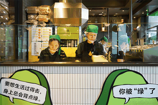 连店员帽子都是绿色的