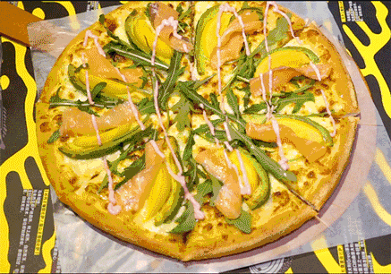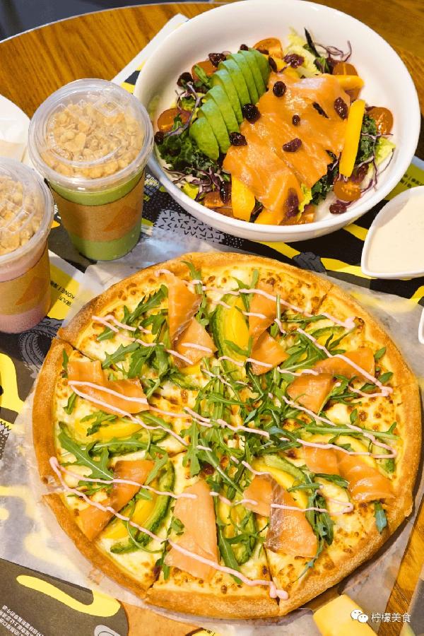 这是乐凯撒第一款绿色比萨,三文鱼牛油果桃桃比萨,用料很丰富,真的一点都不手软,9寸88元。