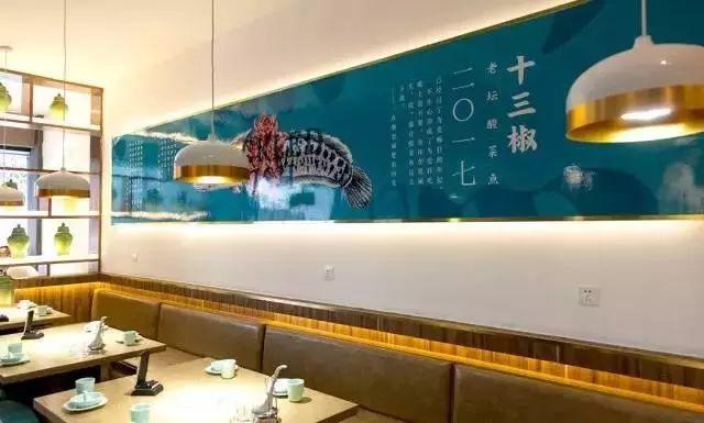 3. 场景快时尚化,十三椒老坛酸菜鱼以蒂芙尼蓝为主色,搭配白色、原木色,小清新风扑面而来,半开放式的格局和讲究的座椅设计让餐厅显得简洁、舒适,其中姚姚爱鱼店内色彩丰富、亮丽,绝大多数的这类店面都非常时尚化。
