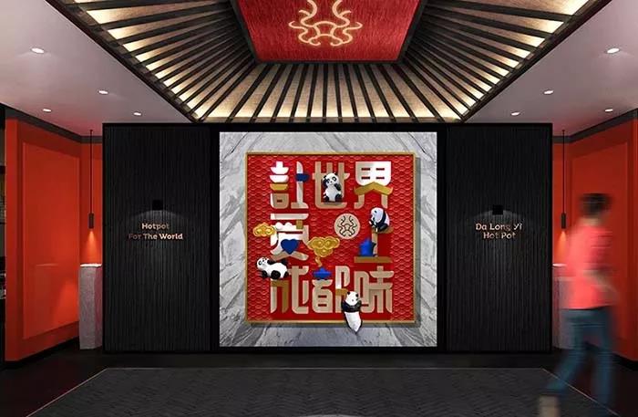 比如大龙燚本次玉林老店在装修,就遵循“让世界爱上成都味”的推广策略:放大品牌VI色彩体系里“中国红”的占比,结合成都人文、建筑、美食等特色,重新定义原有餐饮空间的核心视觉。