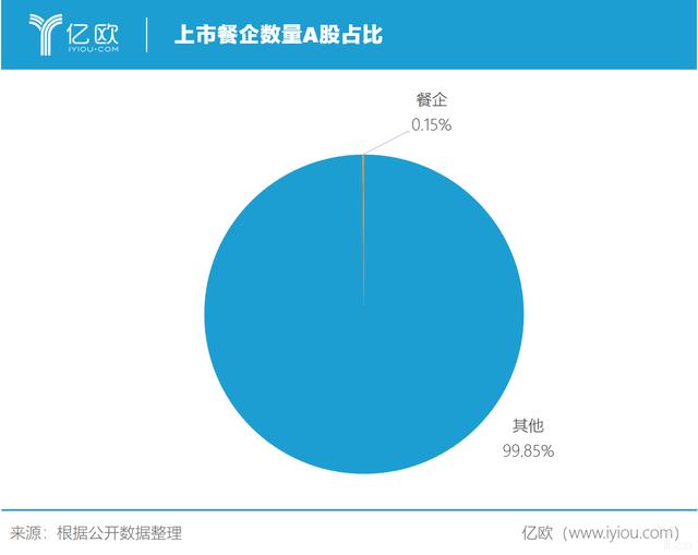 截至2019年10月10日大盘数据,国内近3700家上市公司,主板上市公司1962家,餐企只占四家:全聚德、西安饮食、广州酒家和已转型并更名的中科云网(原湘鄂情),严格意义上的A股餐企数量占比只有0.15%。
