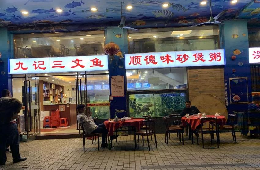 这两家餐厅分别开在商业街的两头,一家叫做“九记三文鱼”(下称九记)的顺德菜餐厅,一家是串串火锅店。