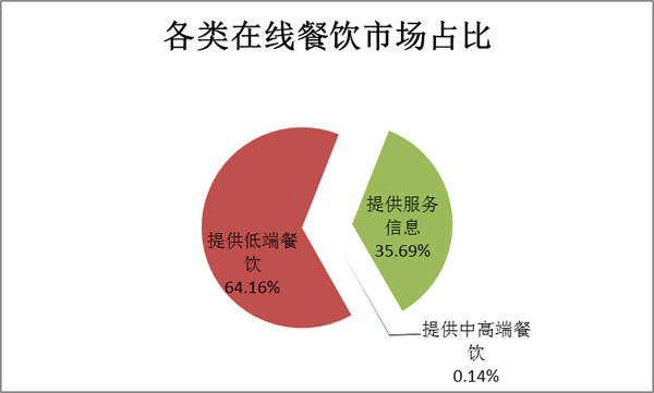 从各类在线餐饮市场占比中,可以看到以提供低端餐饮服务的市场占比高达64.16%,而这类网站或APP普遍存在的问题是由于是作为第三方平台,所以对于店家的食品安全考察不够到位,存在食品安全隐患,而此前网上也频频爆出相关食品安全等方面的负面新闻,作为在线餐饮的从业方应当予以足够的重视,尊重顾客的生命健康。